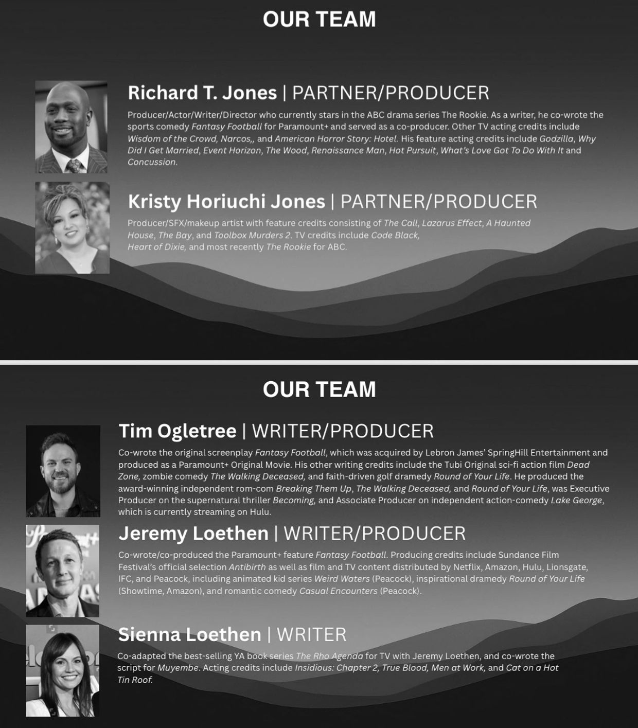 Vision Board Entertainment was founded by Richard T. Jones and Kristy Jones, and now proudly includes producing partners Jeremy Loethen, Tim Ogletree, and Sienna Loethen. The company’s emphasis is on developing and producing mainstream Christian faith-based films and television that reflect both the Natural and Spiritual principles of the Kingdom of God.